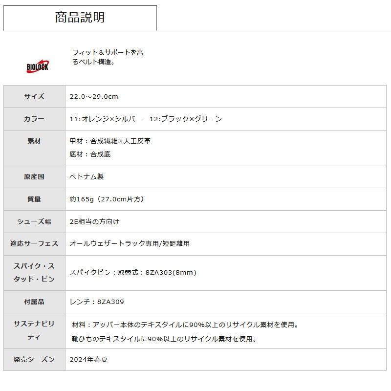 ●付属品:レンチ(8ZA309)・本製品はシューズ袋が付きません