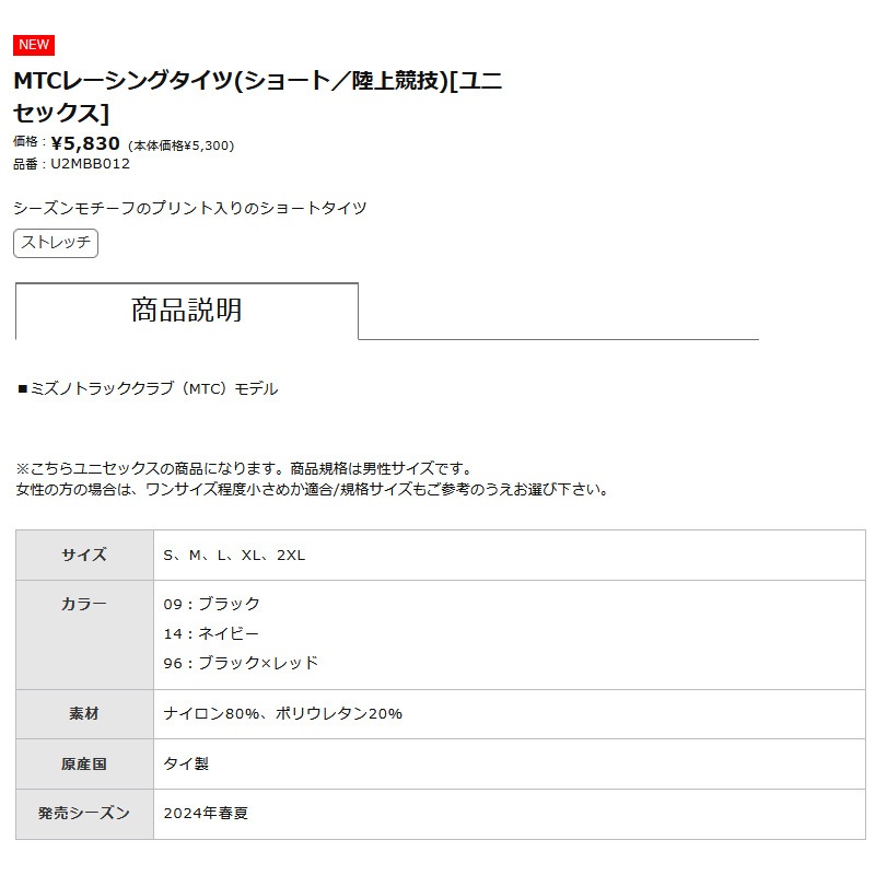 ユニセックス 陸上 ウエア タイツ インナー MTC ミズノトラッククラブ MIZUNO TRACK CLUB 2024年春夏モデル