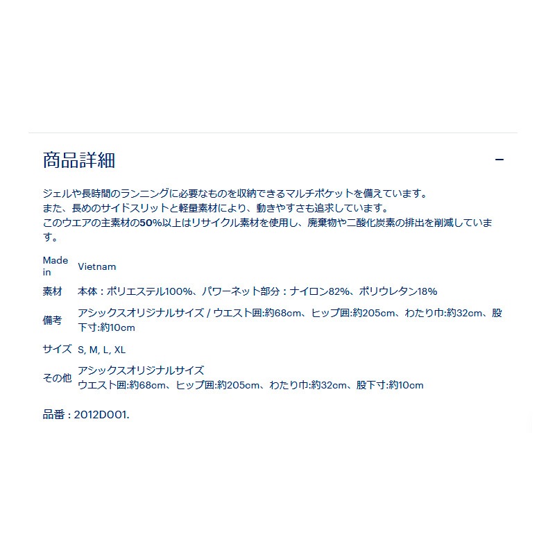 備考:アシックスオリジナルサイズ / ウエスト囲 約68cm・ヒップ囲 約205cm・わたり巾 約32cm・股下寸 約10cm
