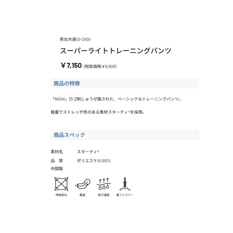 ●商品名:ニシスポーツ スーパーライトトレーニングパンツ