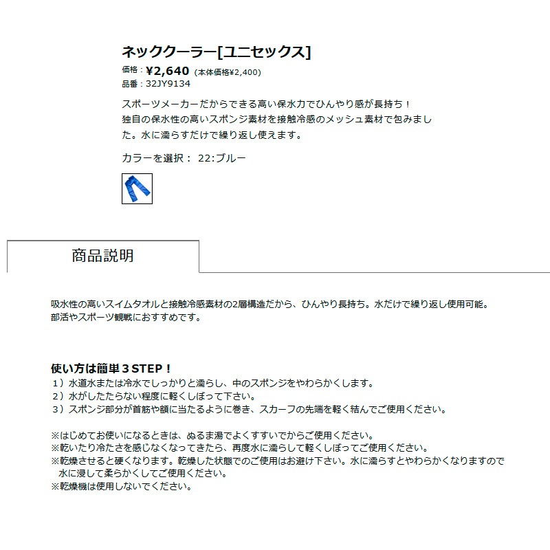 ●商品名:ミズノ ネッククーラー