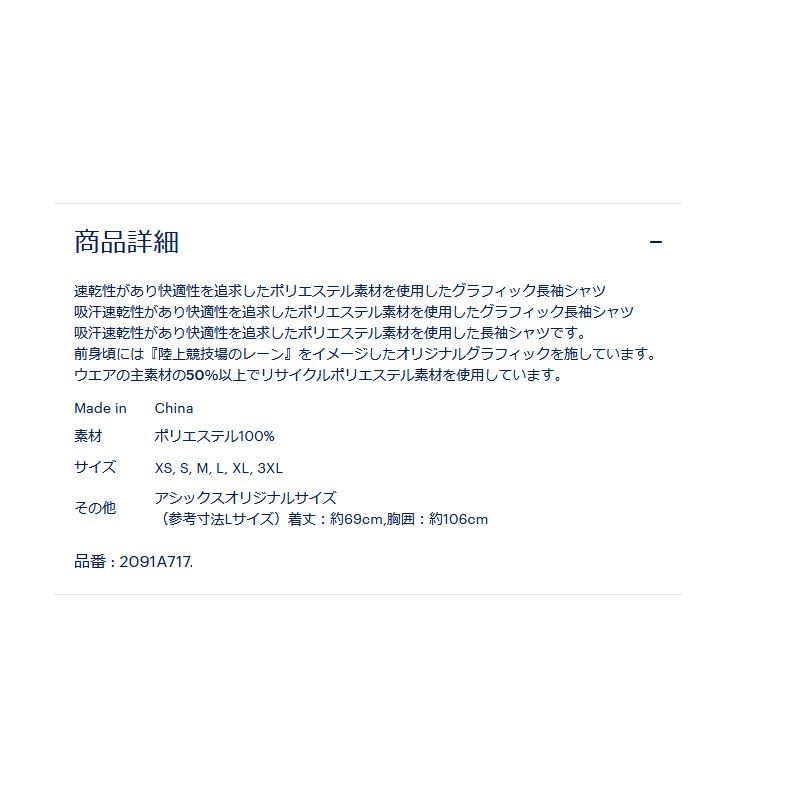 ●商品名:アシックス グラフィックドライ長袖シャツ