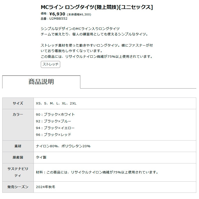 ●商品名:ミズノ MIZUNO MCライン ロングタイツ