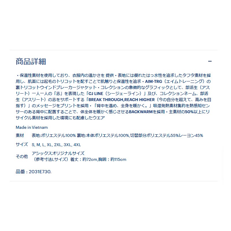 ●商品名:アシックス AIM-TRG裏トリコットウインドブレーカージャケット