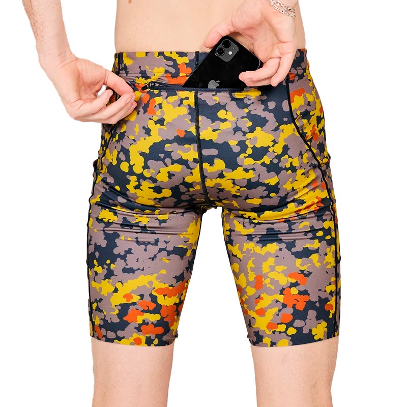SAYSKYのカモCOMBAT+ショートタイツ9インチは、リサイクルポリエステルを使用した全面カモフラージュ柄のメンズ用ショートランニングタイツです。左足にはSAYSKYのボックスロゴがプリントされ、ウエストにはロゴパッチが付いています。両サイドにポケットとバックポケットが付いています。レギュラーウエスト仕様のスリムフィット設計です。レースでの使用はもちろん、ロングタイツの代わりとして季節の変わり目にも最適です。