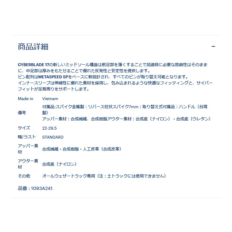 アシックス asics サイバーブレード 17 1093A241-750 陸上 スパイク 短距離 100~400m ハードル 25SS asitf25