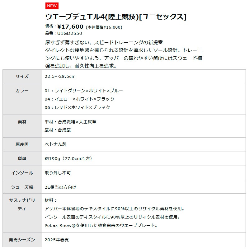 ミズノ MIZUNO ウエーブデュエル 4 U1GD255006 ユニセックス 陸上 レーシング シューズ 25SS
