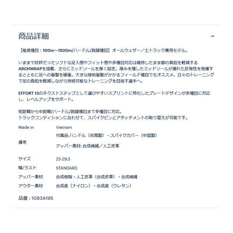 ミッドソールの厚みを増し足の負担軽減だけでなくトレーニングで使いやすい高反発感覚も実現。 いままで好評だったソフトな足入感やフィット感や多種目対応は維持したまま脚の負担を軽減するARCHWRAPを搭載、さらにミッドソールを厚く設定。厚みを増したミッドソールが優れた反発性を発揮するとともに足への衝撃を緩衝。大きな接地衝撃がかかるフィールド種目でもオススメ。日々のトレーニングで足の負担を軽減しながら持続可能なトレーニングを目指す選手へ。