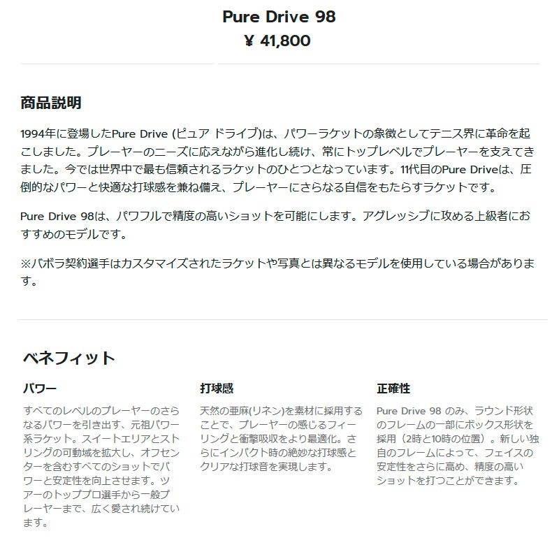●商品名:バボラ ピュアドライブ 98 / Babolat Pure Drive 98