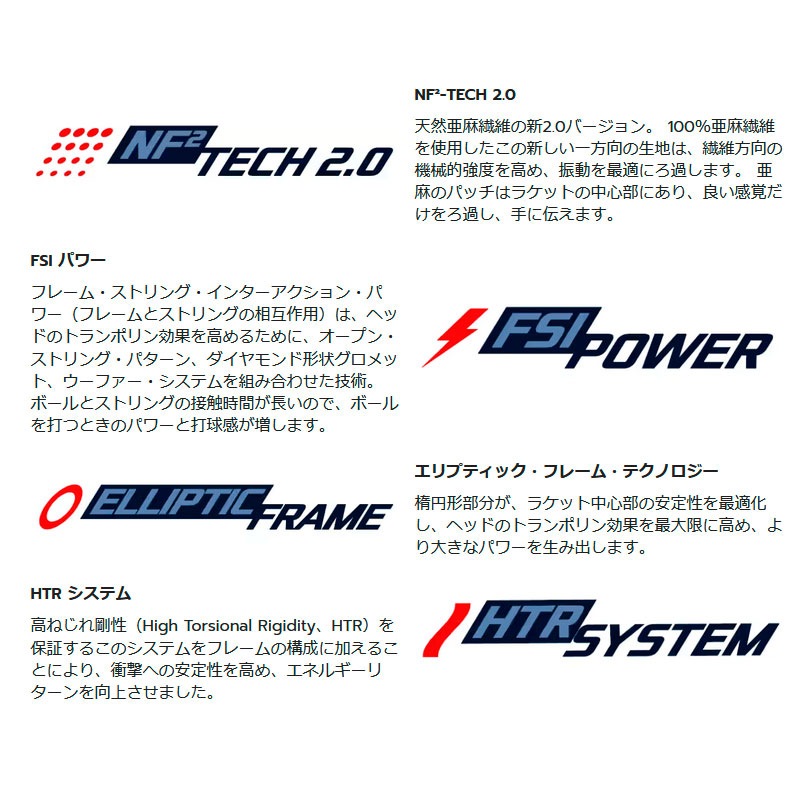 フレーム・ストリング・インターアクション・パワー(フレームとストリングの相互作用)は、ヘッドのトランポリン効果を高めるために、オープン・ストリング・パターン、ダイヤモンド形状グロメット、ウーファー・システムを組み合わせた技術。 ボールとストリングの接触時間が長いので、ボールを打つときのパワーと打球感が増します。