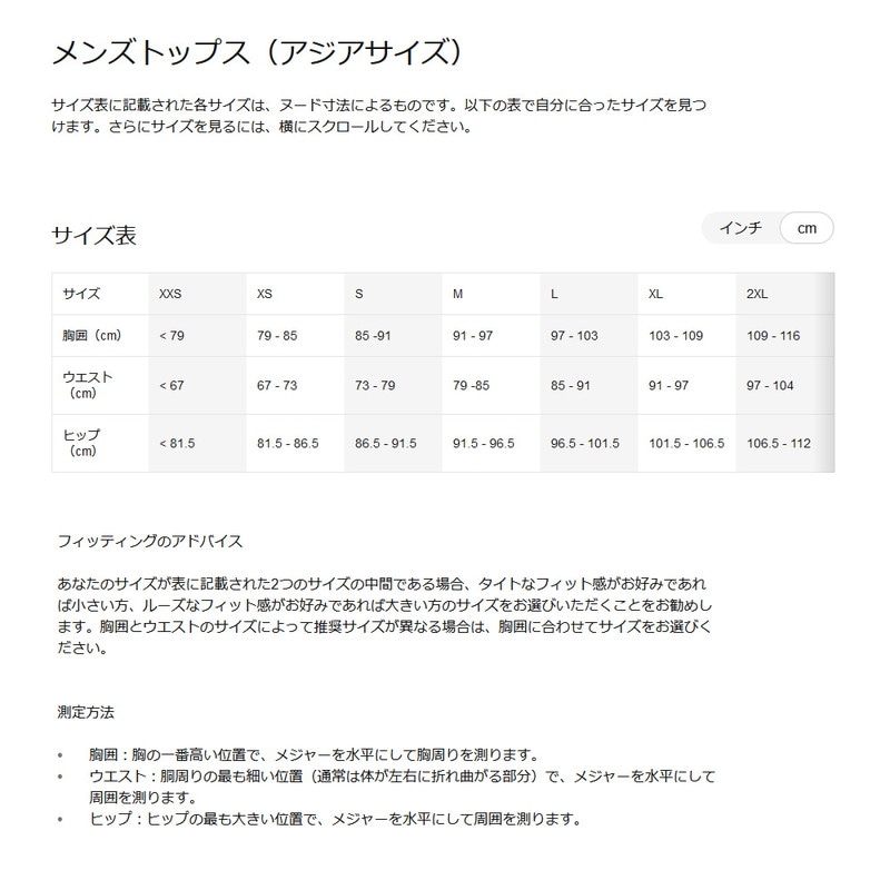 ●サイズ:S、M、L、XL、2XL(アジアサイズ)
