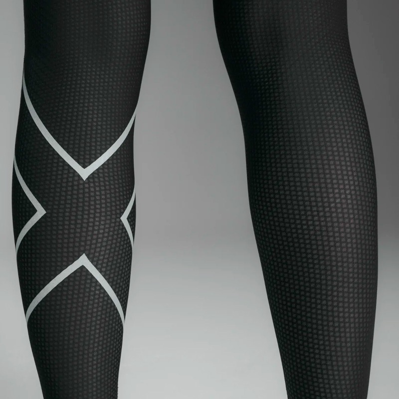 太ももにリフレクティブ2XUロゴ、ふくらはぎにシグネチャーXロゴ。