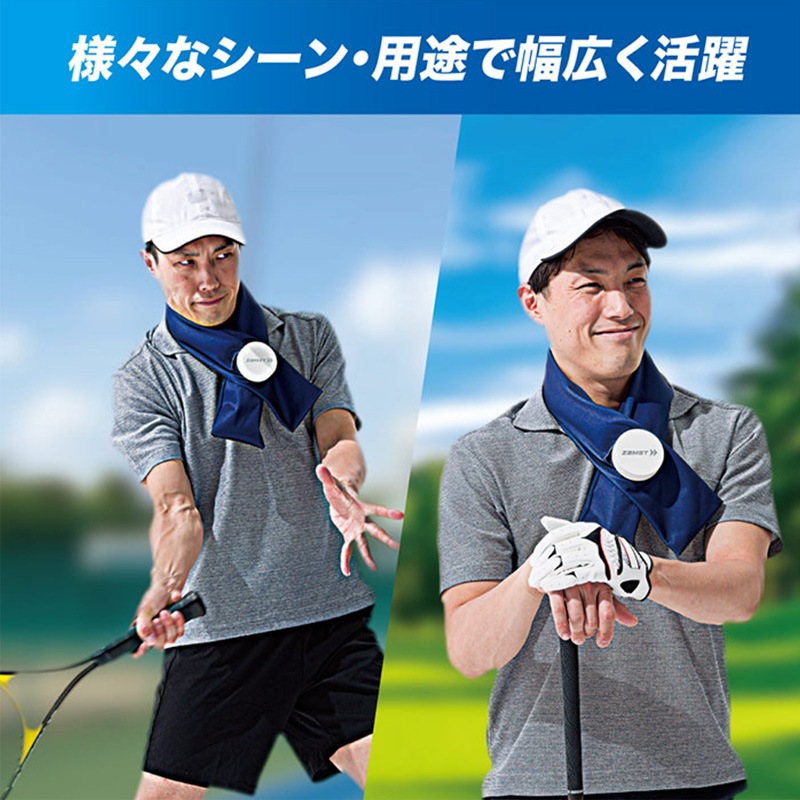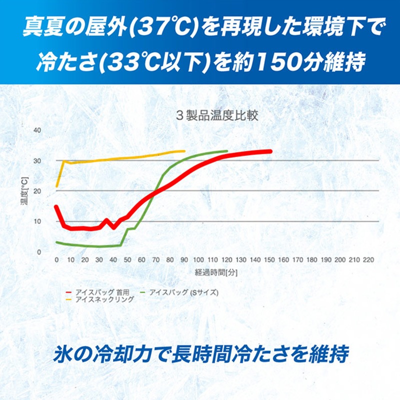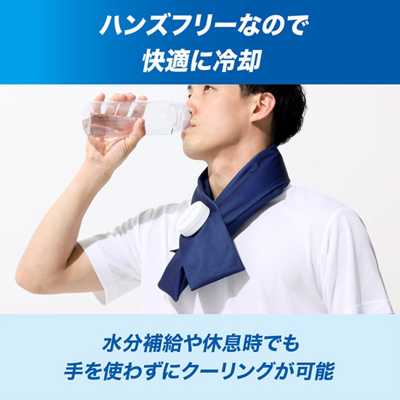手を塞がずに首周りを急速にクールダウン。肌温度より約-20℃の冷却が約1時間継続。