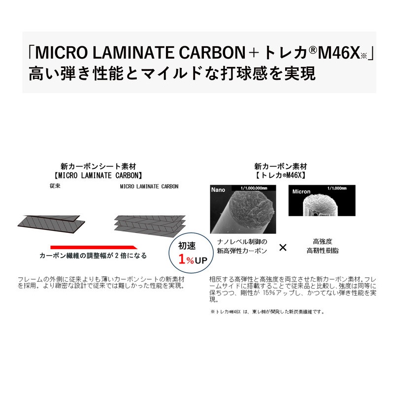 ●素材:高強度カーボン+リアクトレジン+MICRO LAMINATE CARBON+M46X