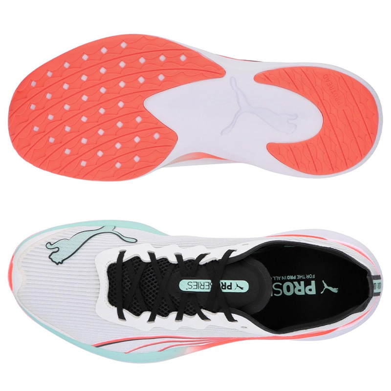 大胆にプーマキャットロゴが施されたモノメッシュアッパーは、通気性と軽さを提供します。ミッドソールにはクッション性と高い反発性を発揮するPROFOAMを採用。日々のトレーニングやランニングにぴったりのアイテムです。