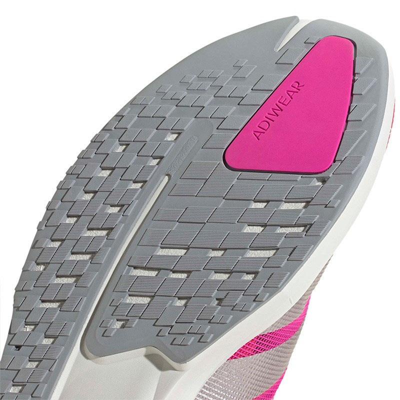 接地感を感じられる19.0 mmの薄底ミッドソールで、ランナーの足の感覚を研ぎ澄ます一足。アウトソールには高い耐久性を持つ「ADIWEAR」ラバーを採用し、接地時の衝撃負荷が高いゾーンに耐久性とグリップをバランスよく提供。