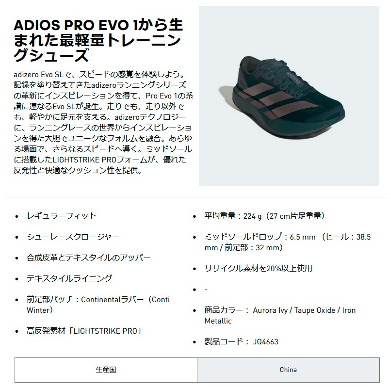 アディダス adidas アディゼロ EVO SL JQ4663 メンズ ランニング レーシング シューズ 25FW EVOSL