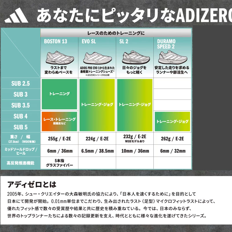ADIOS PRO EVO 1から生まれた最軽量トレーニングシューズ