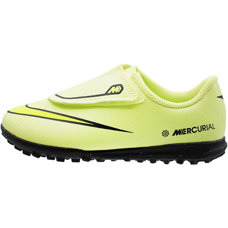 爆発的な加速力で他のプレーヤーを圧倒するマーキュリアルシリーズ、エントリーターフモデル。ベルクロ仕様。