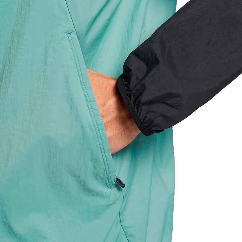 ラグランスリーブが脇の摩擦を軽減し、可動域を拡大。フードはデザインが改良され、しっかりとした好みのフィット感に調節できます。
