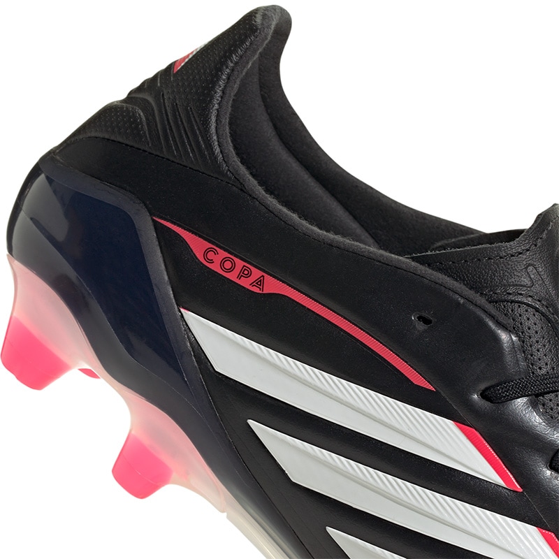 フュージョンスキンがソフトなタッチを実現するサッカースパイク。 サッカーでは、伝統と革新が密接に関係している。コパ ピュア IV ELITE HG サッカースパイクは、高級感を漂わせた一足。ハードグラウンド用にデザインされたこのスパイクは、履き心地、ボールの感触、フィット感を最優先している。