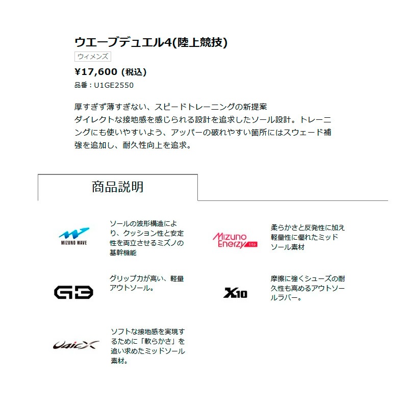 ミズノ MIZUNO ウエーブデュエル 4 U1GE255021 レディース 陸上 レーシング ランニング シューズ 26SS