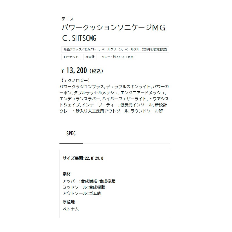 メンズ テニス シューズ オムニ・クレー 26SS 2月下旬発売