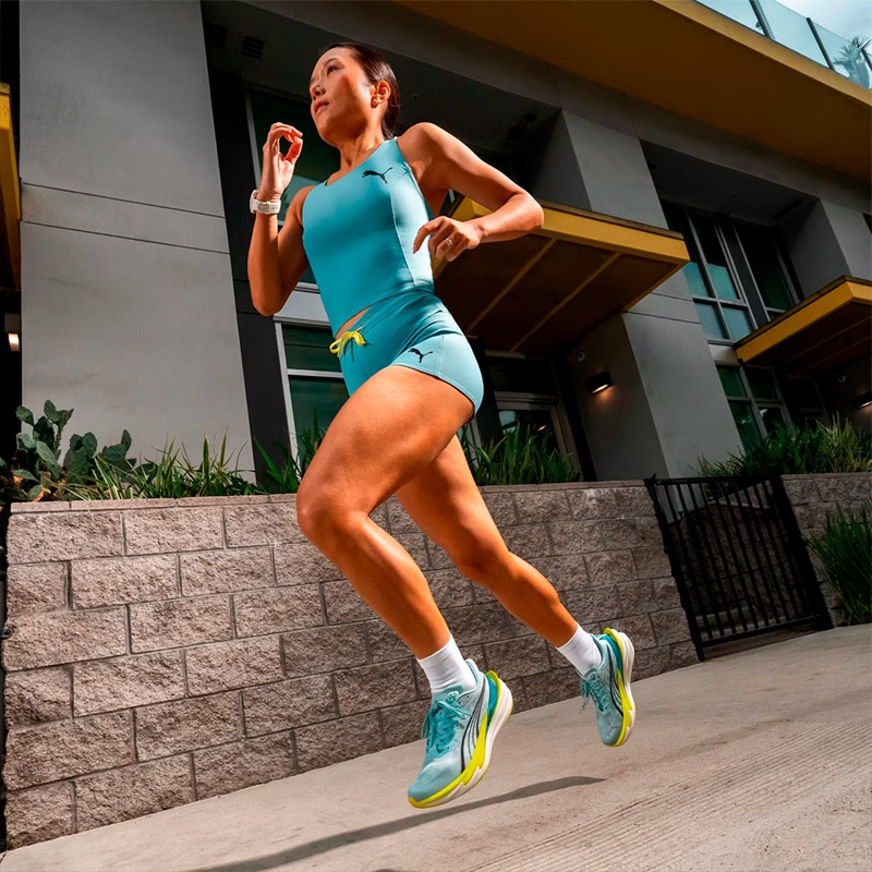 通気性に優れたエンジニアードメッシュアッパーと、ふかふかの履き口&パッド入りタンで快適性も抜群。耐久性の高いPUMAGRIPアウトソールが、かかと着地でもミッドフット着地でも安定したグリップを発揮します。